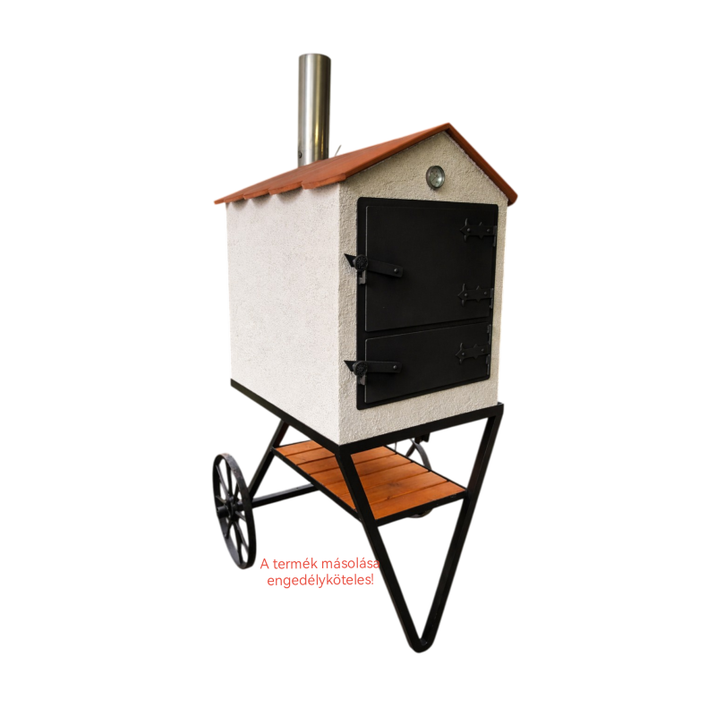 170 kg tömegű, kompakt méretű, cserépfedéses kerti sütőkemence.
